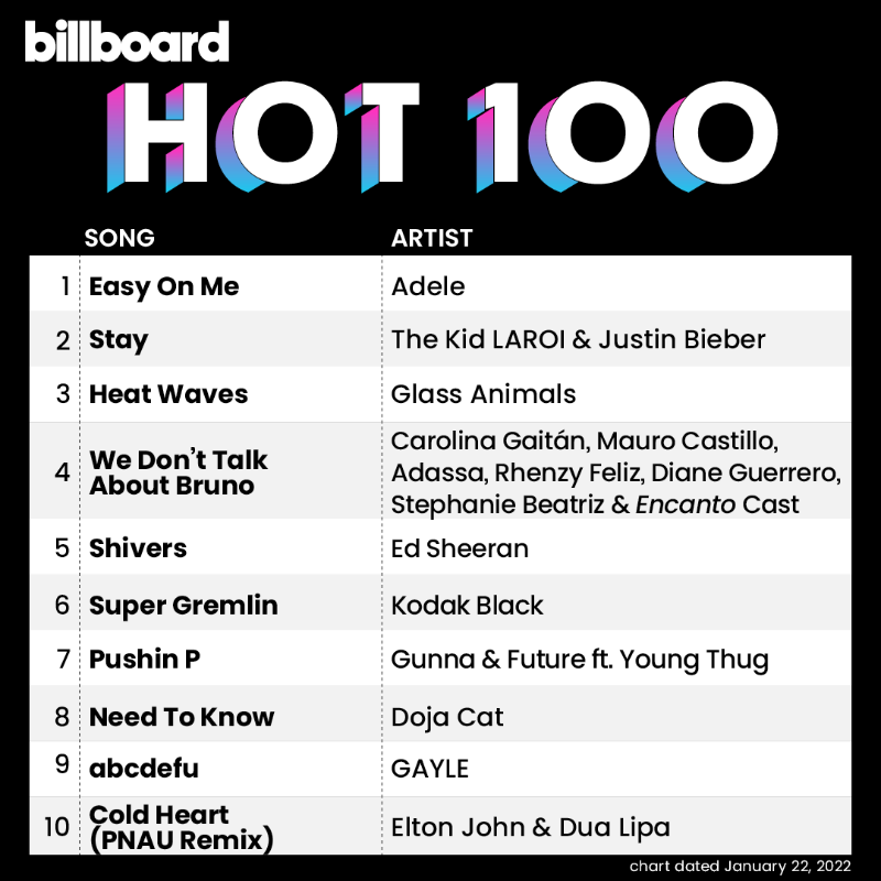 Billboard Charts On Twitter The Hot100 Top 10 Chart Dated Jan 22 2022 Twitter